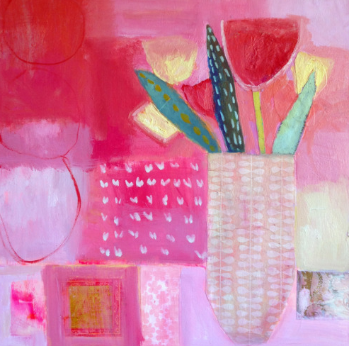 Contemporary Abstract Still Life Flower Art Painting "Tulip Dance" by Santa Fe Artist Annie O'Brien Gonzales